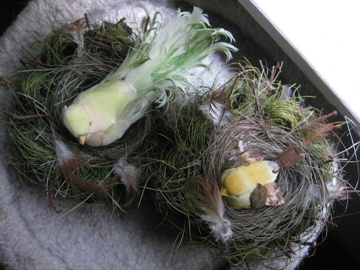 A local plant nursery is going out of business, so I was able to get a bunch of little birds and nests for decor for about $2 each. Yes please!