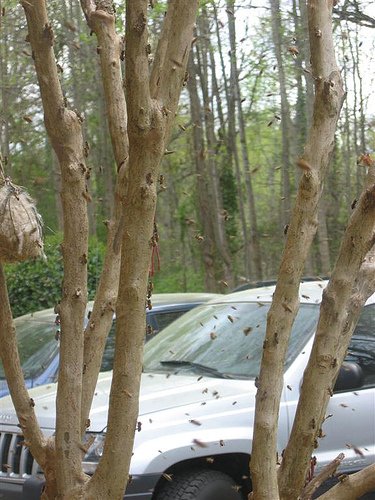 Thank goodness we have a back way out of our apartment. The bees suddenly got mad at somethting and all came out at once. They’re not out anymore, but there were 1000’s of them, COVERING our trees, cars and walls. Here’s the photos I snapped. You Might Also Like I’ve been nuked and more! July 10, 2002 Flooded! January 15, 2005 TaryAnn and Alice, but no Megan June 20, 2003 Leave a ReplyCommentEnter your name or username to comment Enter your email address to comment Enter your website URL (optional) Save my name, email, and website in this browser for the next time I comment.