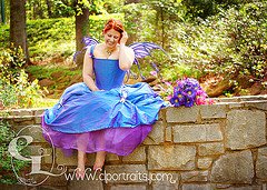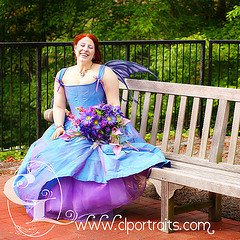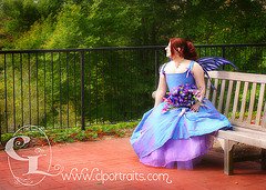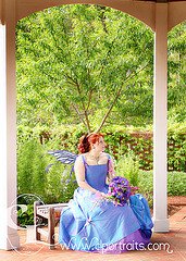 This is her wedding dress! Can you believe she consented to put it all on again and tromp around the Botanical Gardens with me? I love it. We had so much fun. I think the part neither of us will forget is the field-trip that coincided with our trip that day. One of the teachers even incorporated her in the tour, passing us with an exclamation of “Oh, hello, Blue Fairy! Look children, it’s a blue fairy!”